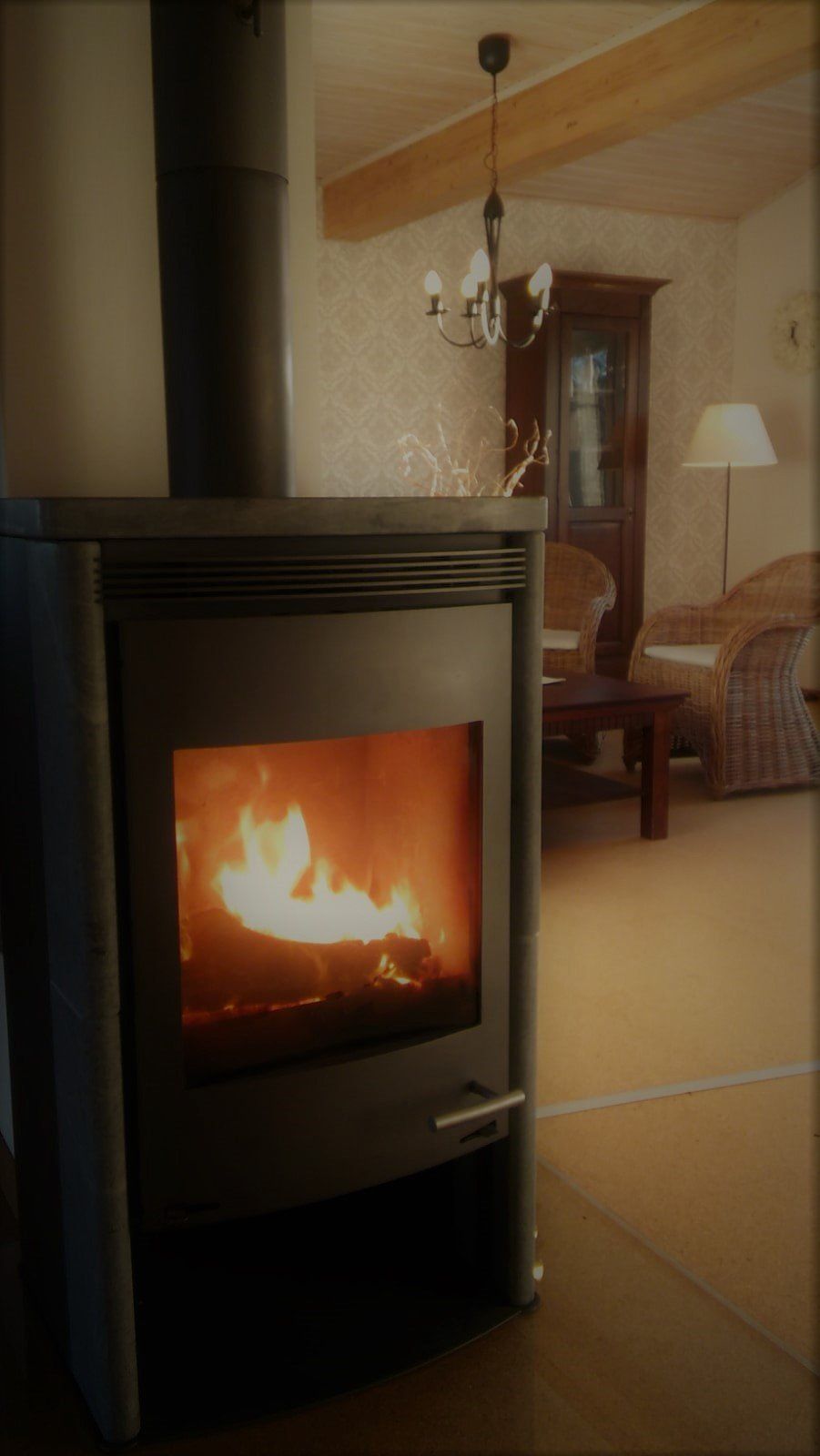 In der Wohnung Feldblick sorgt ein Kaminofen für behagliche Abende.